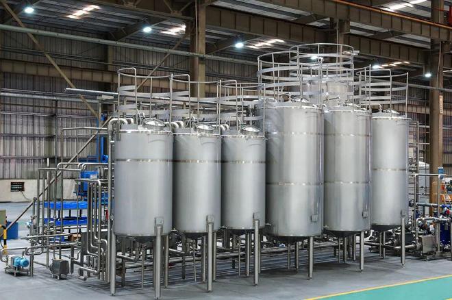 整齐卫生的管排设计,乐惠脱氧水制备系统,国产硅藻土过滤机,整厂集中CIP站等等。