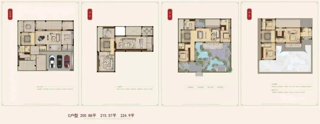 产证面积约:150-380㎡,使用面积约:700-900㎡,花园面积约:100-700㎡地上层高约:一层高3.9米,二层高3.2米,地下层高约:7.8米(部分4.4米),装修:毛坯交付.